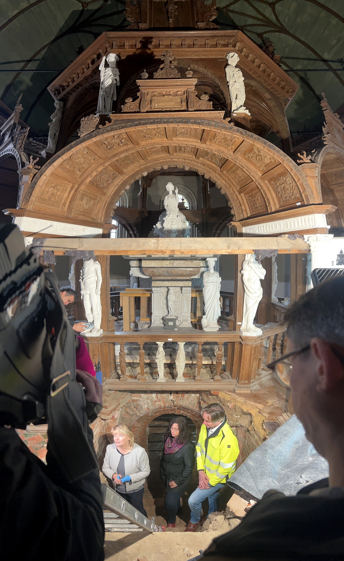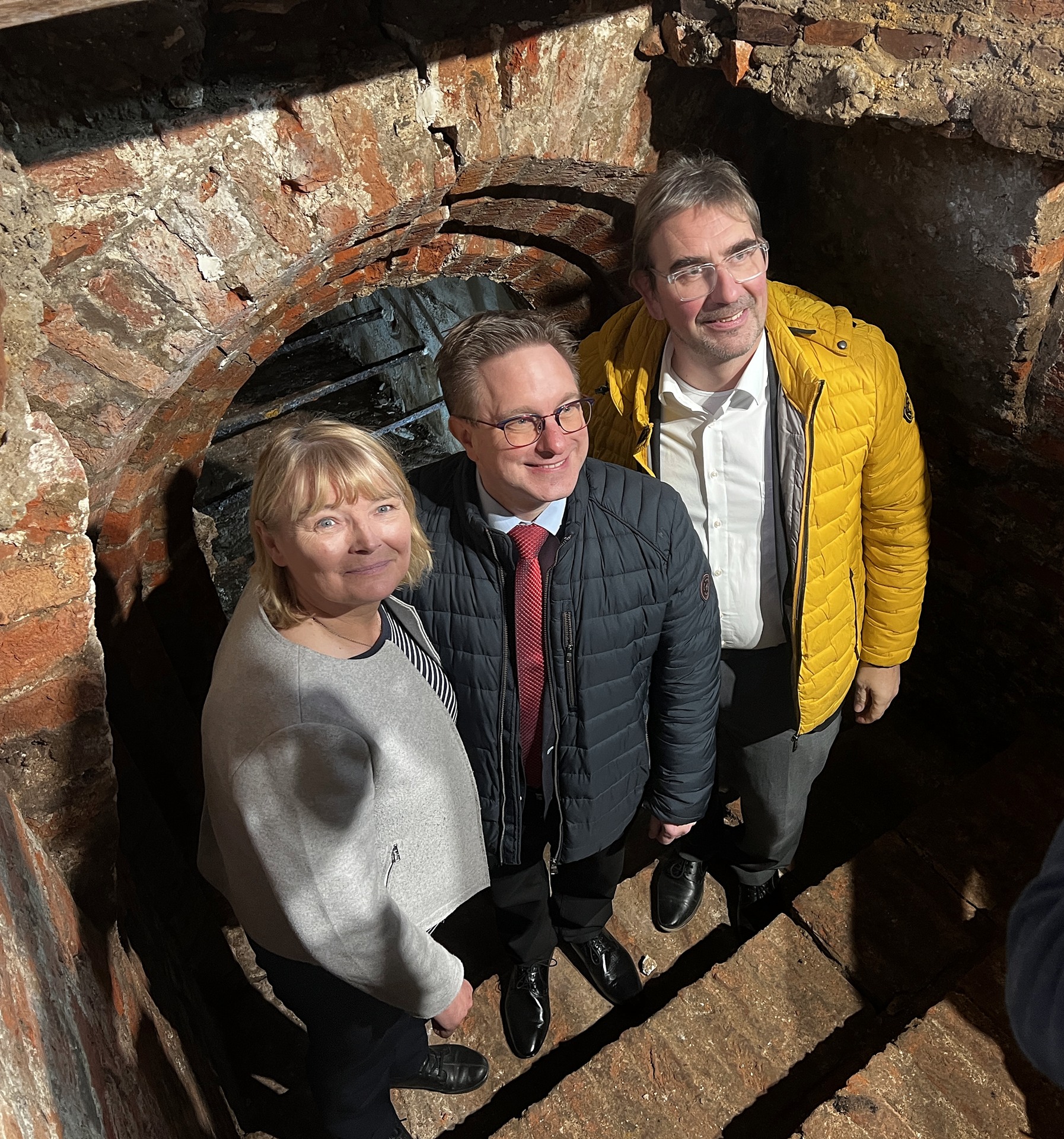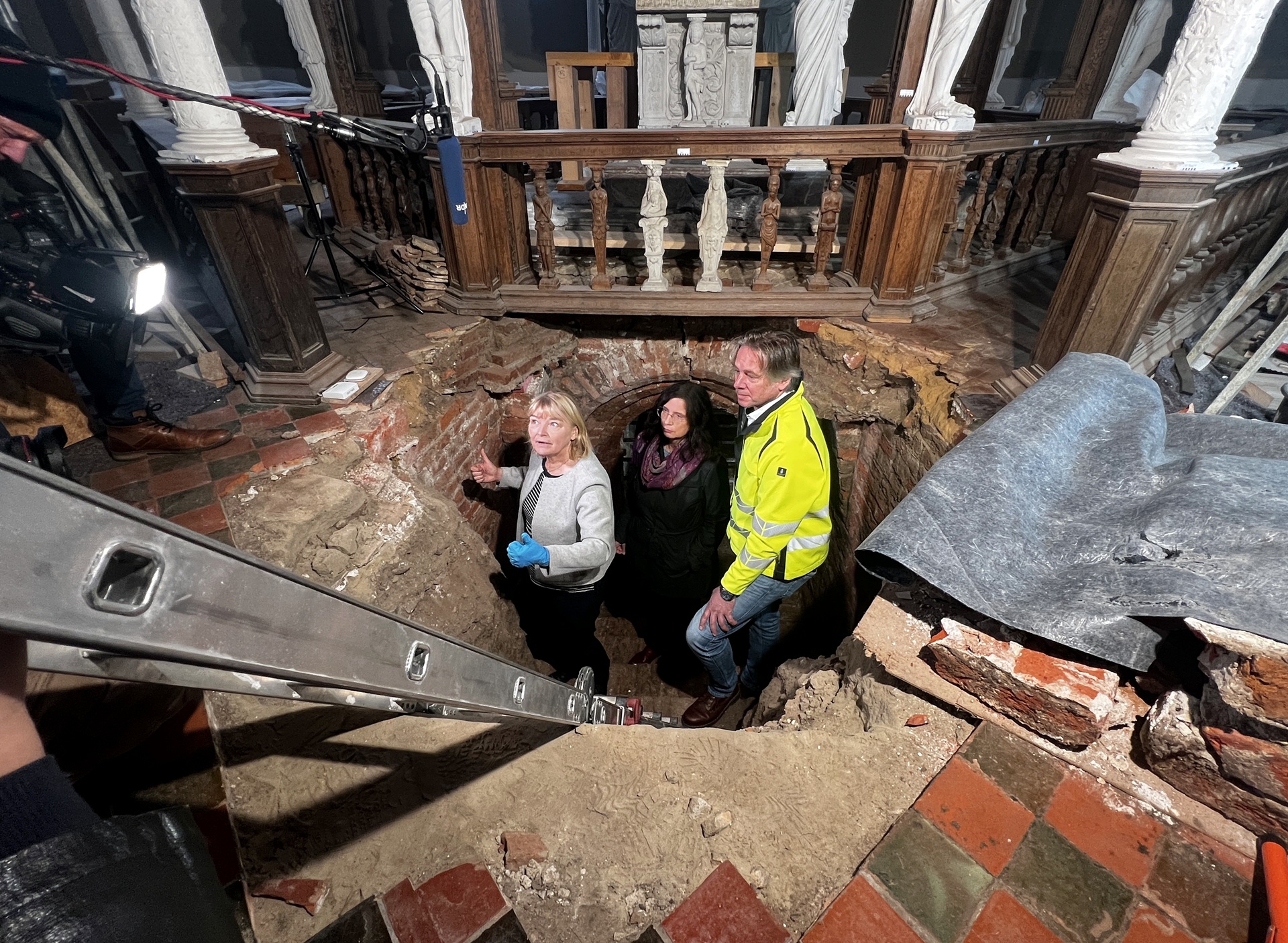 05.11.2025, Prof. Dr. Antje Sander erläutert im Beisein von Prof. Dr. Jana Esther Fries und Ralf Dröge die Beschaffenheit der Gruft (1)