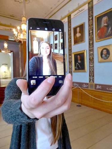 Zu den Portraits ehemaliger Herrscher und Herrscherinnen des Landes Jever, die seit ca. 200 Jahren in der fürstlichen Galerie im Schlossmuseum Jever hängen, können so mit der aktuellen Ausstellung Selfies der Besucher und Besucherinnen erstellt, ausgedruckt und präsentiert werden.