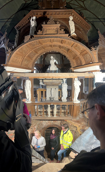 Unter dem Edo-Wiemken-Grabmal in der Stadtkirche Jever wurde die Gruft kürzlich geöffnet. Ziel war es, das bestehende Rissbild zu erkunden und Maßnahmen zur dauerhaften Sicherung dieses einzigartigen Kulturdenkmals zu entwickeln. Die Arbeiten wurden von erfahrenen Teams der Forschungsstelle Gruft im Auftrag des Staatlichen Baumanagements Region Nord-West durchgeführt.