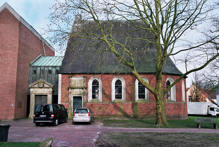 Der gesamte Grabanbau, der ebenfalls um 1560 datiert, wie dendrochronologische Untersuchungen bereits belegen konnten, liegt im Osten der Kirche und hat mehrere Brände (1728 und 1959) überstanden. Seit dem frühen Mittelalter, vermutlich bereits um 1000 n. Chr., ist der Geestrücken Standort einer Kirche. Um 1200 war es sogar eine dreischiffige Basilika, deren südliches Fundament heute unter dem Grabmal liegt. Nach dem letzten Brand wurde in den 1960er Jahren die barocke Kirche nicht mehr aufgebaut.
