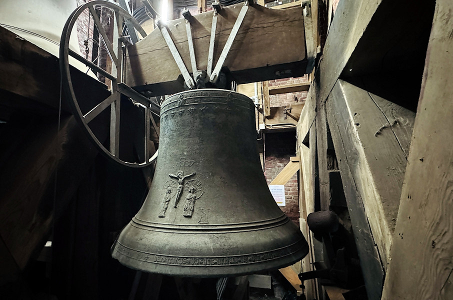 Diese prächtige Glocke, die seit vielen Jahrhunderten jeden Abend zu Ehren Marias läutet, wurde 1540 im Zuge der Fehde gegen Balthasar von Esens, der auch Boing von Oldersum zum Opfer fiel, als Beute zusammen mit vier weiteren Glocken aus ostfriesischen Kirchen ins Jeverland verschleppt. Diese ist heute im jeverschen Kirchturm verankert und stammt ursprünglich aus Eggelingen. Der berühmte Bremer Glockengießer Ghert Klinghe hat sie 1461 erschaffen.