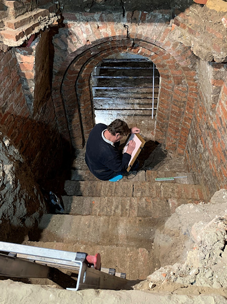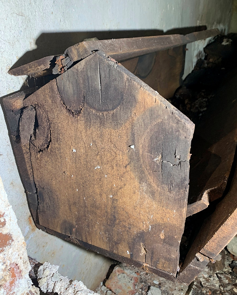 Im Vorfeld wurden die Restauratoren des Landesamtes für Denkmalpflege hinzugezogen, um uns im Hinblick auf den Umgang mit den Hölzern, möglichen Textilien oder botanischen Funden zu beraten. Ein erster Blick auf den Zustand der gesamten Gruft ergab, dass diese für einen gewissen Zeitraum großer Feuchtigkeit, vielleicht sogar einem Wassereinbruch, ausgesetzt gewesen sein muss.
