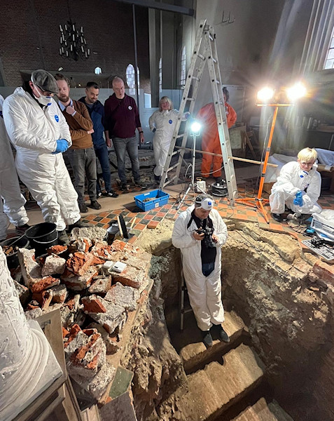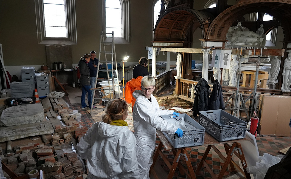 Um den Fachleuten die Chance auf eine genauere Untersuchung des Risses und insbesondere des Bodens rund um die Gruft zu gewährleisten, wurde schnell deutlich, dass dafür die Gruft geräumt werden musste. Auch im Hinblick auf eine spätere Sanierung und Stabilisierung des Gewölbes ist dieses Vorgehen zwingend erforderlich.