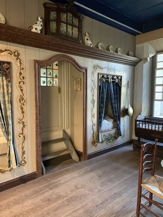 Das Fliesenzimmer und die Bauernstube „Haschenburgerzimmer“ wurden 1921 in einem Raum im Erdgeschoss des Schlosses eingerichtet und repräsentieren noch heute die inszenierte Museumsgestaltung der Heimatbewegung, Photos um 1960 und 2021.Unsere Aufgabe ist es, das Museum den aktuellen Herausforderungen entsprechend anzupassen und zu verändern. Immer wieder hinterfragen wir daher die Präsentation und gestalten auch die ständige Ausstellung neu: die Forschung bringt neue Ergebnisse, wertvolle neue Objekte können erworben werden, Restaurierungen und archäologische Untersuchungen fördern spannende Details zur Geschichte hervor und die zeitgebundene Sicht auf die Dinge lässt neue Erkenntnisse zu: Geschichte ist in Bewegung und unsere Aufgabe ist es, dies auch in der Art der Präsentation der historischen Zeugnisse deutlich zu machen.