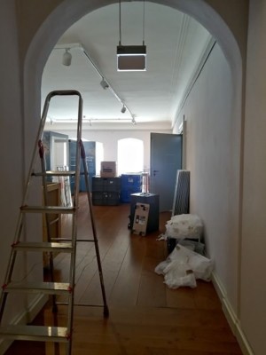 An den ersten beiden Tagen durfte ich beim Abbau der Sonderausstellung Alle Welt spielt helfen. Zeitweise war es mit Tetris vergleichbar, da die großzügig in Luftpolsterfolie gehüllten Exponate in Kisten verpackt werden mussten. Schlussendlich passte es, die erste Lieferung der Duckomenta stand aber auch schon vor der Tür. Nun hieß es also Aus- statt Einpacken. Die Sonderausstellungsräume füllten sich mit an die Wände gelehnten Gemälden – und Luftpolsterfolie. Durch den Anblick der vielen populären Persönlichkeiten, die als Enten gemalt wurden, gab es viel zu schmunzeln. Recht häufig hörte man auch „Das ist ja auch süß!“. Die gute Laune war quasi vorprogrammiert. In der Lieferung waren nicht nur Gemälde, sondern auch Repliken von Entenschädel enthalten, die der Entwicklung des Homo sapiens gleichen – die Schädel gehören zu meinen persönlichen Highlights. Nachdem die ersten Gemälde hingen, folgte die zweite Lieferung aus München. Neben weiteren Gemälden warteten auch Statuen, wie die Freiheitsstatue als Ente oder die Duckfretete darauf, von uns ausgepackt zu werden. Durch die Einbindung der Exponate in die Dauerausstellung wird der Ablauf der Geschichte gewahrt. Beim Schlendern durch das Museum fallen nicht alle anatiden Gemälde oder Gegenstände auf, da sie sich sehr gut in das Gesamtbild einfügen. Besonders auffällig ist dies in der fürstlichen Galerie, wo ein Großteil der Enten erst auf den zweiten Blick sichtbar wird.