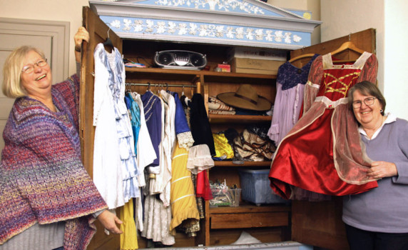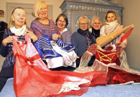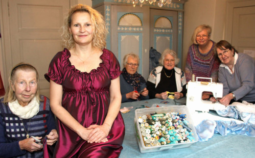 Die Kinderträume aus Stoff, Tüll und Spitze entstehen in der Schlossnäherei. Seit mittlerweile 15 Jahren treffen sich die sieben Frauen der ehrenamtlichen Schlossnäherinnen. Das Gründungsmitglied, Karin Dörjes, erinnert sich an die Anfänge: „Ich habe mit den Kindern Geburtstag gefeiert und nahm die Kleider anschließend mit zum Waschen nach Hause“. Doch irgendwann wurde es ihr zu viel: „Es blieb nicht beim Waschen, die Kleider mussten auch geflickt werden“.Aus den anfänglich kleinen Kleiderreparaturen wurde schnell die Nachfrage nach neuen Kostümen. Und das konnte und wollte Karin Dörjes nicht mehr allein bewältigen. Deshalb gab die ehemalige Handarbeitslehrerin eine Zeitungsanzeige auf. Daraufhin meldeten sich unter anderem auch die heutigen Mitglieder der Schlossnäherei. Die Nähwerkstatt war geboren. Mittlerweile treffen sich die Schlossnäherinnen zwei Mal monatlich in den Räumen der Museumspädagogik zum Klönen und zum Handarbeiten. Sie sammeln schöne Stoffe von Bekannten und Verwandten und auch Schmuck, Handschuhe und andere Accessoires, die man als Prinzessin brauchen könnte.