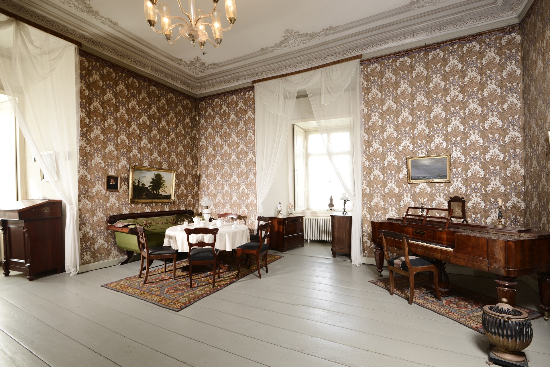 Prächtige Gobelins (um 1680), reich verzierte Ledertapeten des 18. Jahrhunderts und klassizistische Wandbespannungen aus Papier zeugen von der gehobenen, kostbaren Ausstattung der einstigen Wohnräume des Schlosses.