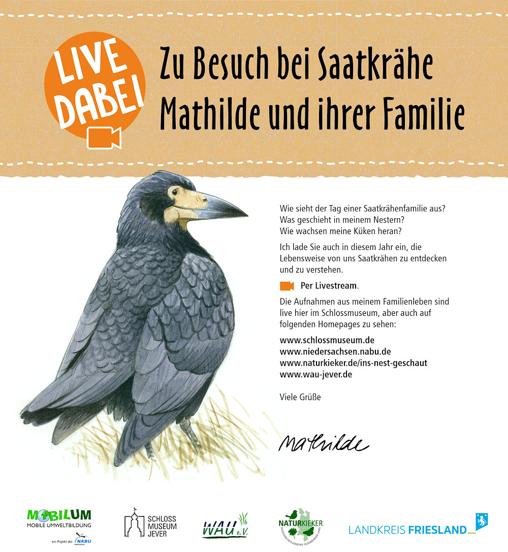 Das Brutgeschäft der Saatkrähe “Mathilde” im Jahr 2026 kann beginnen. In Kürze wird das Saatkrähenpaar sein Nest beziehen und die Brutzeit kann Live per Webcam verfolgt werden.